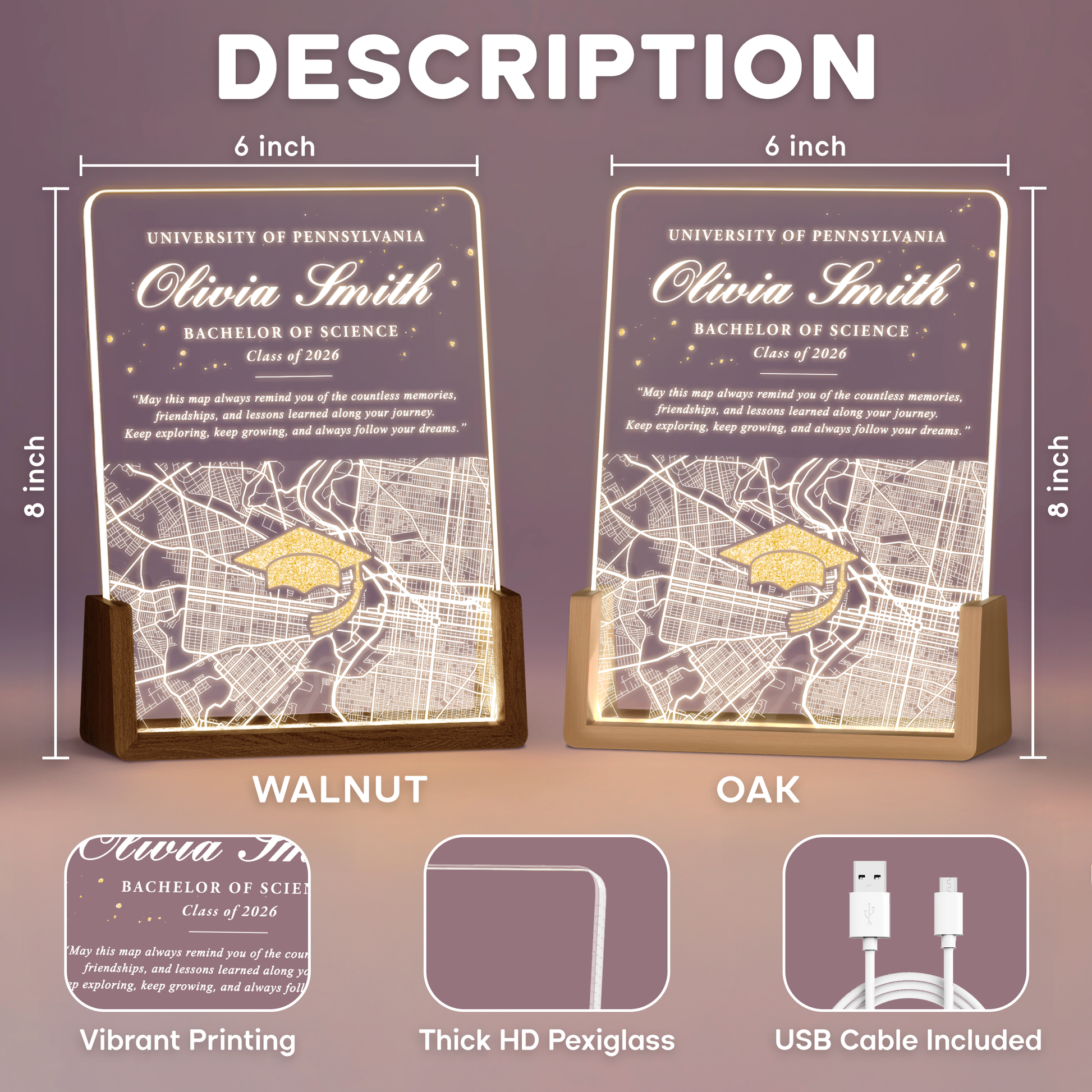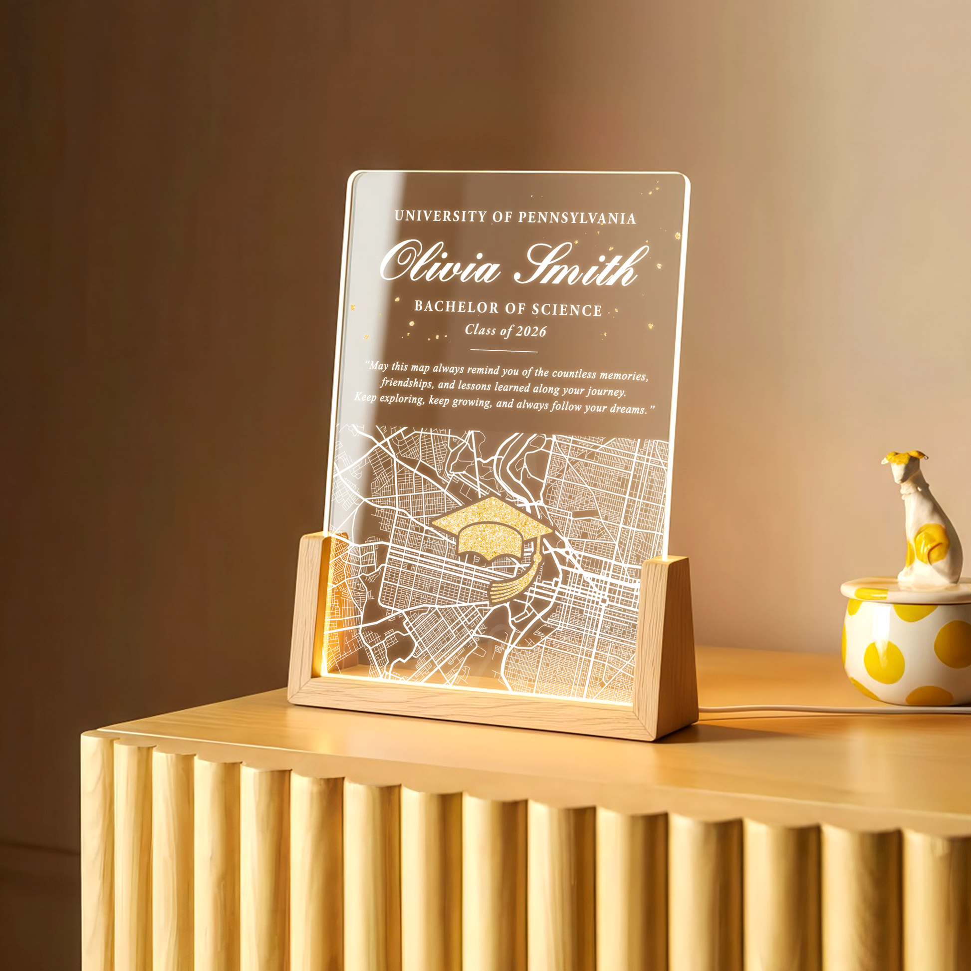 Personalized Graduation Map LED Plaque β Custom Name, University & Class of 2026 Keepsake Gift